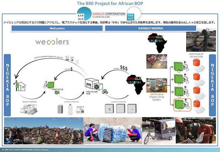 上記は、ナイジェリアの深刻化するゴミ問題にアクセスし、廃プラスチックを油化する事業。